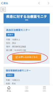ご興味のあるモニター内容より「お申し込みはこちら」をクリックしていただくと対象モニターの「お申し込み画面」に移動するため、お好きなモニターに申し込むことが可能です。