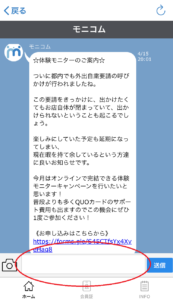 モニコムアプリから募集中モニター情報を閲覧、また弊社モニコムまでお問い合わせができるようになります